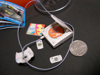 細かい所まで作ってあって面白いのですが、コントローラのビジュアルメモリーを入れる所がちょっと接着がずれています。細かい所だけど、気になる。ドリームキャスト本体のディスクを入れる所の蓋もちゃんとはまってないのか蓋を開けると蓋が取れてしまいます。ココまで作ったんだったらもう少しちゃんと組み立てて欲しいぞ。それから、ディスクのケースやディスクとシールの大きさが合ってないです。ピッタリにならないと気持ち悪いです。