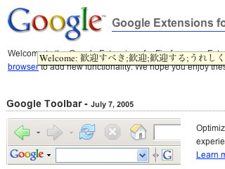 今までPageRankの為に別の機能拡張を入れていたのですが、これで不要になりました。英単語にマウスカーソルを載せると簡単な翻訳が表示されるのも便利です。