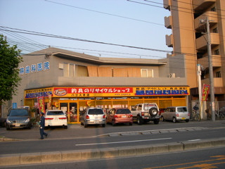 先日オープンしている事を発見していたのですが、写真を撮ってなかったので本日散歩の途中で撮影しました。その場所ですが、以前はポプラが入っていたのですが、閉店になってしまって暫く空き家となっていました。そこにパゴス本店という釣り具のリサイクルショップがオープンしてます。まだオープンしたばかりらしく現在オープニングセール中です。 駐車場に車が収まらないくらいに客の入りがよいようです。自分は釣りに興味がないので、店内までは入ってませんが・・・。