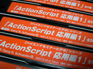 Macromediaのセミナービデオを借りているので、最近少しずつ見てます。以前Directorのビデオを借りて見たときは、ビデオ自体が古いし、知っている事が多くてイマイチだったのですが、今回借りているFlashの方は少し面白いかな。ActionScriptに限定した内容になっているので、初歩のおさらいとしては非常によいです。ビデオのタイトルは応用編となっているのですが、自分の印象としては初級編ですね。ただ、応用編2の方はXML関連の内容が中心になっているので、最新のFlashを使う場合は役立たずです。XML関連はコンポーネントをBindして作る事が出来るので、以前のコーディングとは大幅に異なります。以前の方法も使えますけど・・・。