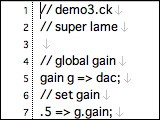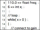 面白そうな音関係のプログラミング言語を見付けました。まだサンプルを試してみただけなのですが、Mac OS X(10.3.9)で動きました。