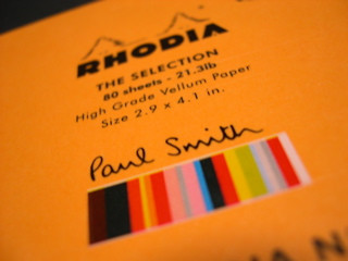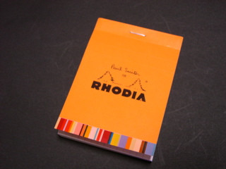 以前から気になっていたRHODIAのメモ帳を買ってみました。広島そごう新館のロフトにノーマルバージョンとポール・スミス・バージョンとが有ったので、どちらを買おうか迷ったのですが、結局ポール・スミス・バージョン(NO.11 210円)を買いました。ノーマルバージョンとの違いは表紙の違いが一番大きいのですが、中の方眼も色の濃さが違ってました。もしかすると誤差の範囲かもしれませんが、ポール・スミス・バージョンの方が良さそうだったので、こちらにしました。