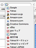 先ずは右上の検索ボックス。GoogleやAmazonなど通常使うモノがデフォルトでインストールされてある検索エンジンなどが英語での検索を前提とされている形になりちょっと具合悪いです。GoogleなんかはFirefoxの日本語版だと「日本語のページを検索」を基本としているのに対して、lzyc buildは「ウェブ全体から検索」と成ってます。Amazonも日本語版はamazon.co.jpを検索するのに、lzyc buildはamazon.comです。