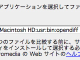 で、設定ですがFileMergeを使う場合、/usr/bin/opendiff と設定します。opendiffがFileMergeを起動するモノのようです。