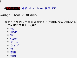 アクセシビリティ向上の為にkei3.jpの一部でLink要素ナビゲーションに対応しました。LynxやOperaなどLink要素ナビゲーションに対応しているブラウザの場合、そのナビゲーション機能だけでもある程度の閲覧が出来る様になってます。