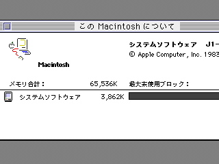 5月1日にJIT版のBasilisk IIが公開されてました。JITの方はホスト環境としてPowerPCをサポートしないのかと思っていたのですが、Mac OS X 10.3.9で起動出来ました。素晴らしい。
