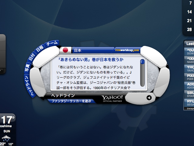 季節モノとしてFIFAworldcup.comのWidgetなんかも面白いです。ちゃんと日本語にも対応していたのは驚きました。