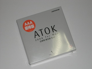 予約していたATOK 2006が到着。今回は広辞苑付きのパッケージを買いました。(1000ポイントを使って買ったので、支払は8450円) ATOKは新しい環境になったときに必要になるので、Macbookを買う前に買っておきました。