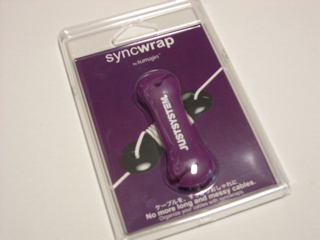 今回はおまけでヘッドホンケーブルなどをまとめる「syncwrap」が付いていたのですが、色が変。紫です。白とか黒とか無かったのかな。赤と黄とか青でも良かったよ。紫は無いでしょ。8色の中で一番望ましくない色だよ。(T_T) 「syncwrap」は以前から気になっていて、使ってみたかったので、取り敢えず使ってみて、良かったら白でも買います。
