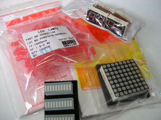 ちなみに、今回初めて買ったパーツとしてはCDSセルとかリレー、高精度IC温度センサ、赤色LEDドットマトリクスなんてモノもあります。センサー関係はPICと組み合わせたりして、パソコンで計測するとか出来れば面白いかなと思って買ってみました。赤色LEDドットマトリクスは場合によってはこれもセンサーとして使ってみたいので、実験用に買いました。リレーは単純に扱ったことがなかったので、お試し用ですね。何に使うかは決めてません。