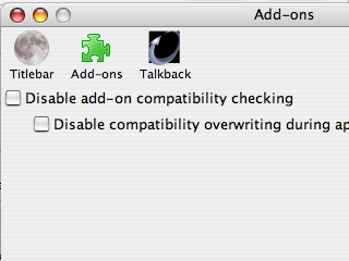 これをインストールしてチェック機能を無効化すれば、Copy URL+がインストールできました。インストール後も、再起動などに互換性のチェックが入るようなので、チェック機能を無効にした状態で使い続ける必用があるようです。何か他のモノをインストールする場合は注意が必用かも。
