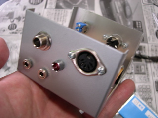 MIDI-DIN SYNC変換機に成る予定のアルミケース(MB-31)に更にLEDやスイッチなどを追加しました。中に入れる予定のユニバーサル基板も仮で固定してみました。