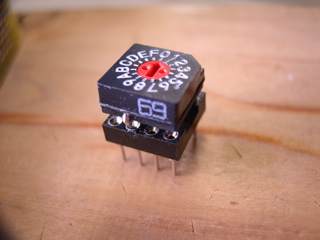 帰宅して見てみるとロータリースイッチの足が曲がってました。元に戻そうとしたら折れてしまった。(T_T) 一つ204円もしたのに、このままゴミになるのは勿体ないので、ICソケットを使って修復しました。ブレッドボードに載せてLEDを繋ぎ確認したら、上手く動いているようです。折角MIDIチャンネルの設定に使おうと思って買ったのに、ゴミになってしまうかと思いましたよ。ひとまず良かったです。