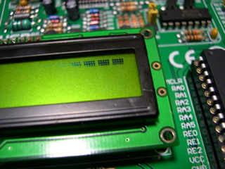 先の日記に書いたように純正のキャラクタLCDが壊れてしまったので、秋月のデカ文字LCDを無理矢理繋いで試しました。