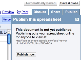 それから、その他の機能としては、まだ試してませんが、パブリッシュ出来たり、シェア出来るようです。リビジョンというメニューもあるので、ドキュメントのバージョン管理が出来るのかも。なかなか凄いですね。エクセルフォーマットへのエクスポートも出来るようなので、ちょっとした用途ではエクセルを起動するまでもないかも。