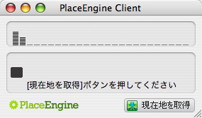 但し、PlaceEngineクライアントをインストールする必要があります。Mac OS Xの場合、ファイルをダウンロードしてきて、ディスクイメージファイルをマウントし、アプリケーションをアプリケーションフォルダーにコピーするだけ。後はコピーしたアプリケーションを起動して、下記のページにアクセスすれば使用できます。