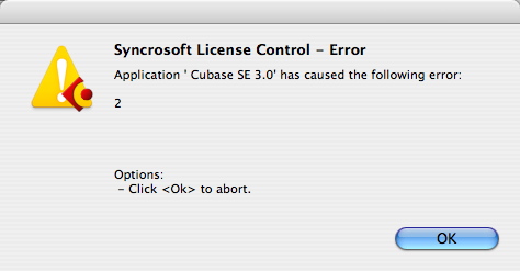 やはりCubase SE3が使えないのは悔しいので、もう一度試しにVSTプラグインを全て外して起動。やはりダメ。で、エラーを見るとSyncrosoft License Control - Errorと出てます。もしかしてドングルを認識してないのか?と思いSyncrosoft License Controlの最新版をダウンロードしてきてインストールすることにしました。