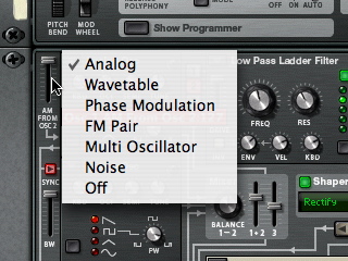 まずはthorですが、これまでの集大成です。オシレータとしてノコギリ波、矩形波、三角波、サイン波の様なアナログオシレータからウェーブテーブル、フェイズモジュレーション、FM、マルチオシレータ、ノイズがあり、フィルターはLPF、ステートバリアブルフィルター、コムフィルター、フォルマントが選択できます。オシレータは三つ、フィルターミキサーの後に二つ、アンプの後に一つ搭載されてます。 ルーティングによってはちょっと違うことになりますが、基本的なこの様な構成。一見複雑そうに見えるのですが、音作りの部分に関しては、構成はそれほど複雑ではありません。でも、使いこなすのは結構大変かも。とてもデモ版の20分の制限の中では把握できません。(^_^;)