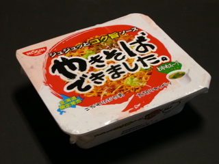 北海道には「焼きそば弁当」という地域限定のカップ焼きそばが有ると知って以来、何処かで売ってないかなと思ってました。おそらく3月25日のテレビ番組「がっちりマンデー!!」で知ったので、それからほぼ半年。やっと巡り合えましたよ。緑井のフジグランで現在開催中の北海道物産展で売ってました。「焼きそば弁当」以外にも日清「やきそばできました。」なんてモノもありました。これは知りませんでした。どうも北海道はカップ焼きそばと言えば、「焼きそば弁当」が人気があるらしく、U.F.O.を出している日清が「焼きそば弁当」に対抗して「やきそばできました。」を販売しているようです。「焼きそば弁当」には粉末スープが付いているので、「やきそばできました。」にも付いてます。