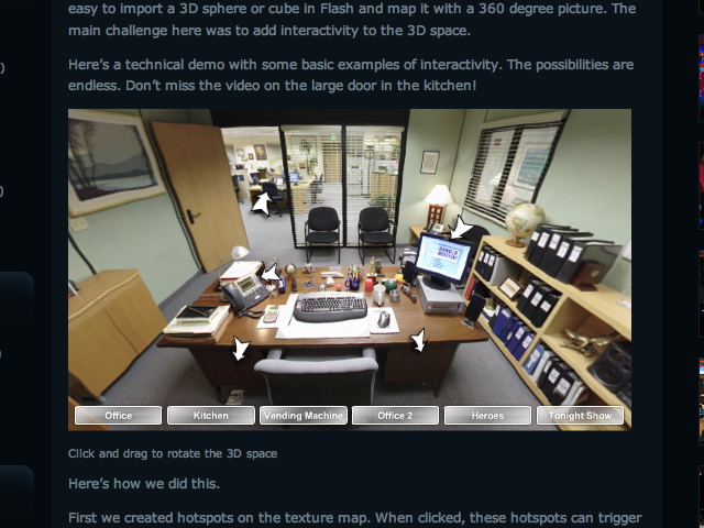 QTVR Like Panorama with Flash and Papervision3D for NBC and The Office on BLITZ Labs, the BLITZ Agency Blog