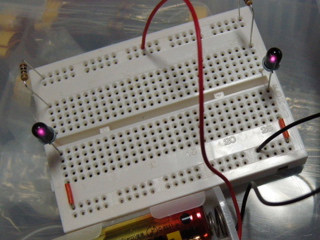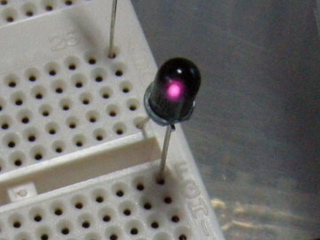 と言っても、赤外線LEDを電池に繋いだだけです。