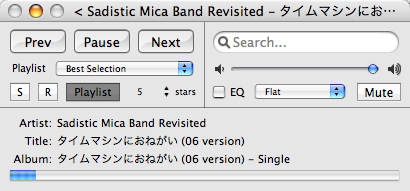 iTunes Remote Controlが物凄く便利かも。コマンドラインで同様の事を行うモノはありましたが、GUIは知らなかったので、Wiiリモコンを使ったりしてましたが、どれも好きになれず、結局直接ジュークボックスにしているiBookを操作してました。でも、iTunes Remote Controlは最高です。パソコン(MacBook Pro)で作業をしているわけだから、そのマシンからコントロールできるのが一番。iTunes Remote Controlはまさにピッタリの方法です。