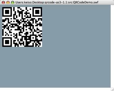 ActionScript 3でQRコード生成ライブラリーを作っている人も居ました。これ良さそうです。毎回動的に生成すると具合悪い場合もあるので、管理ページでこれを使って、as3corelibのエンコーダを使って画像ファイル(JPEG/PNG)で保存して使えば良いですね。