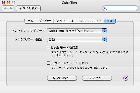 Adobeのサポートデータベースにこの件に関して情報が有るのですが、既にQuickTimeの設定項目が違います。「レガシーエンコーダを表示」と言う項目に変わっているので、試しにチェックを入れてみましたが、ダメです。どうやら新しいQuickTimeではFlashトラックは完全に使えなくなったようです。ちなみに現在インストールしてあるQuickTimeは7.4.1です。