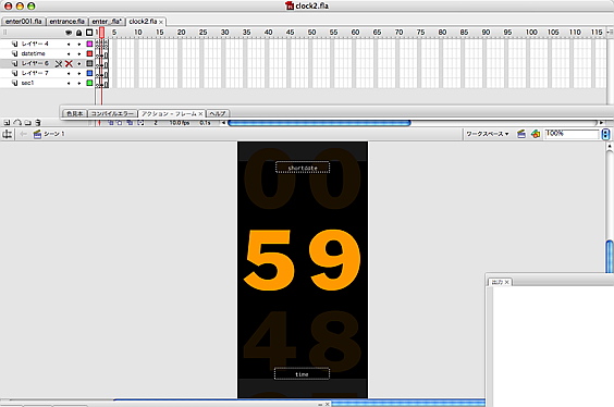 今回はタイムラインに並べて作ったのですが、tweenerがAS2でも動くみたいなので、今度はtweenerを使ってスクリプト中心で作りたいです。