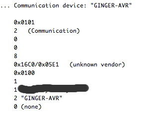 発振子をセラロックに変更して、AVR Studioでの設定を色々と試したところ、MacのUSB Proberで確認が出来ました。スクリーンショットをアップしておきます。