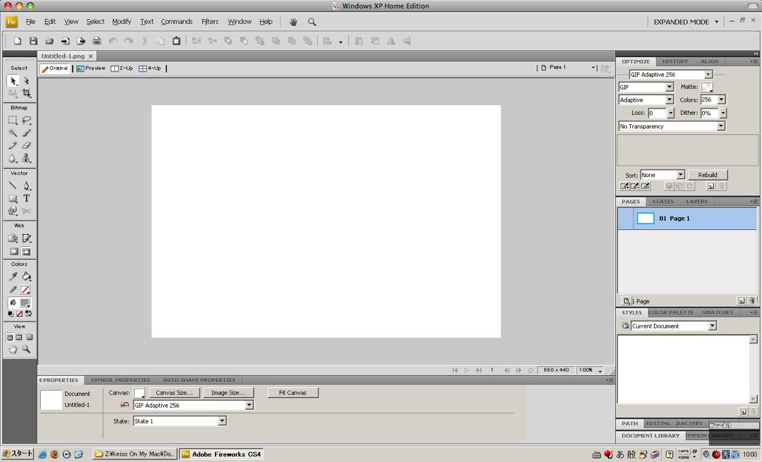 Macで起動できなかったので、Fireworks CS4 BetaをWindowsにインストールしてみました。こちらは問題なく起動できました。