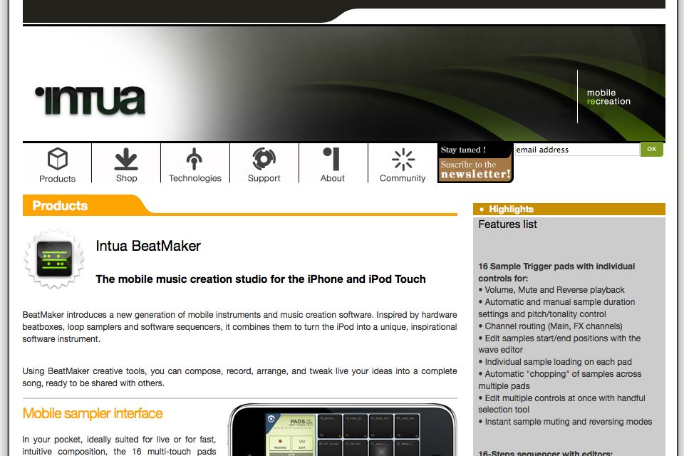 スタパブログで知ったのですが、iPhone(iPod touch)用の音楽制作ツール「Intua BeatMaker」が面白そうです。サンプラーベースの音楽制作ツールらしい。