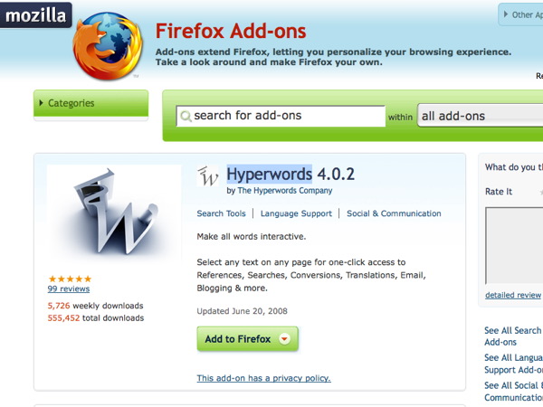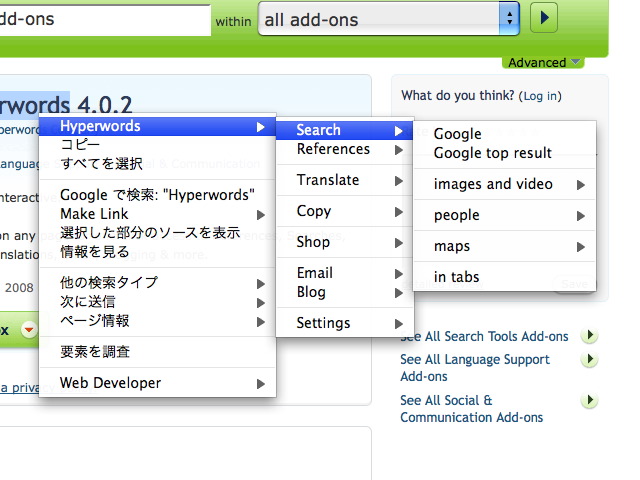 Firefoxの選択テキストを色々な形で使用できる「Hyperwords」が便利そう。