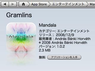 1日限定で無料だったので、Mandalaをダウンロードしてみました。何か役に立つとかってアプリケーションではないのですが、万華鏡の様で綺麗です。
