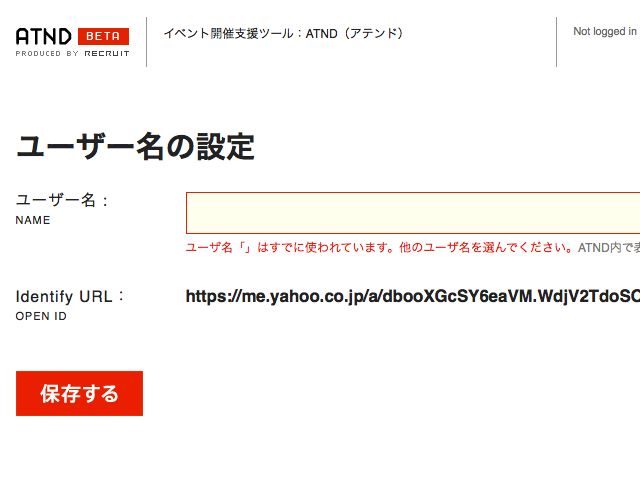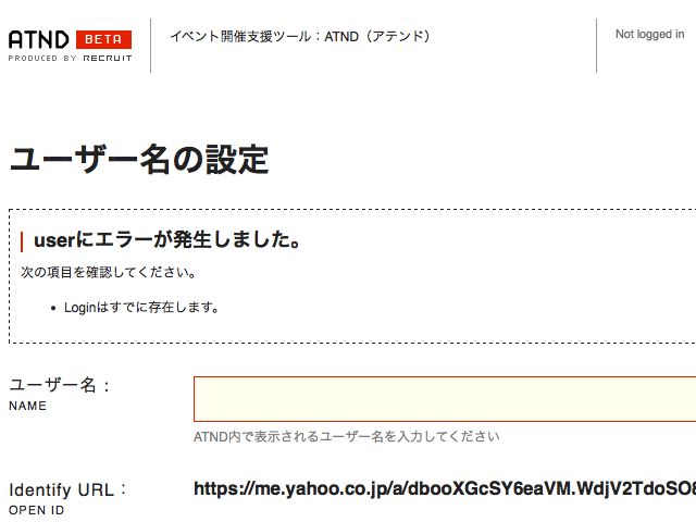 ただ、このユーザー名が他の人と重複していると登録できないようです。分からなくはないのですが、OpenID自体は重複してないので、ニックネームとして重複を許す形にしてくれた方がストレスを感じなくて良い気がします。(ちなみにユーザー名は後で変更できる様です。)