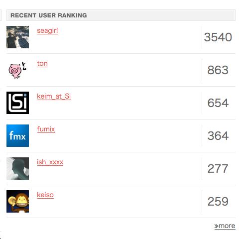 先ほどWonderflのトップページを見たら、ユーザーランキングで6位に成ってました。ビックリ。