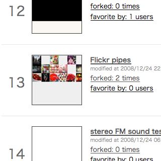 コードランキングでも「code on 2008-12-23」が8位。「Flickr pipes」が13位です。
