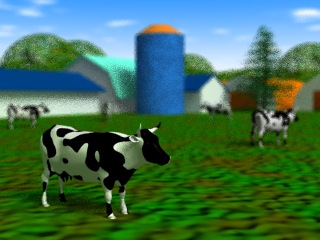 素材集の牛を中心に少し風景を作ってみた。小さい画像のサイズだと多少まともに見えるかもしれないけど、印刷するには絶えないクオリティ。