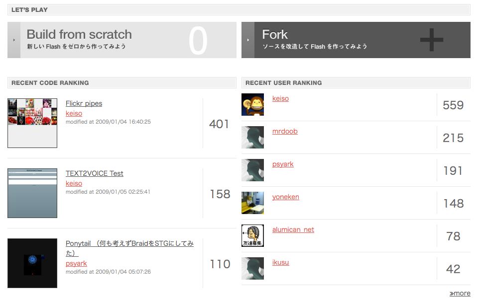 - 2009年01月24日 wonderfl:新しいランキングの仕組み (3013)@ Flash