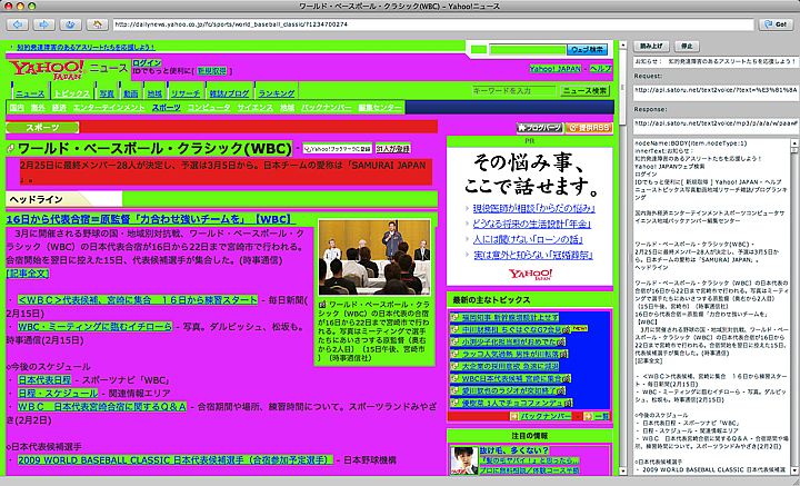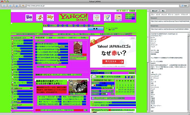 Adobe AIRのウェブページ表示機能を使って、アプリケーションをもう一つ実験中です。(掲載画像の色が凄い事になっているのは、実験上、分かりやすくする為です。)