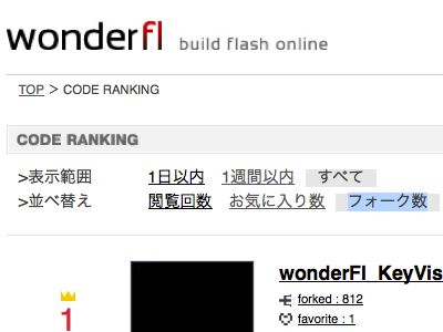 wonderflのコードランキングにフォーク数で並べ替えが @ Flash