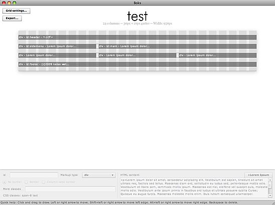 Blueprint CSSを使ったブロックレイアウトを容易にしてくれるAIRアプリ「Boks」を試してみました。