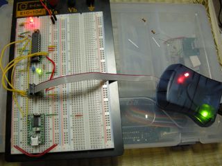 Arduinoのブートローダーが書き込みできない時点で、面倒臭くなって、Arduino Duemilanove 328を注文したので、到着してから挙動を確認して、ブレッドボード上のArduinoもチェックしてみます。時間があれば・・・。
