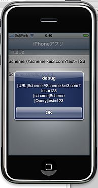 iPhoneアプリの連携でURLスキームが使われている事は知ってましたが、WebKitからアプリケーション自身を呼び出す形で使えるとは知らなかった。アプリケーションの方からWebKit側をコントロールする事は色々と想定していたけど、URLスキームを使えば、WebKitで表示しているHTMLファイルからアプリケーション自身の機能を呼び出したり出来るので、これは便利かも。