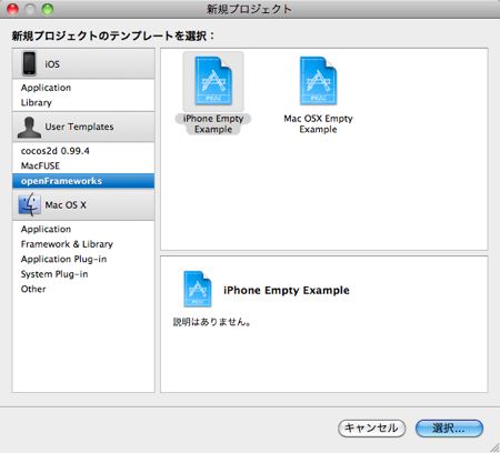 もともと、MacでopenFrameworksを使いたかっただけなので、iPhone用はどうでも良いんだけど、使い方が分かったら、iPhoneでも遊んでみるかも。