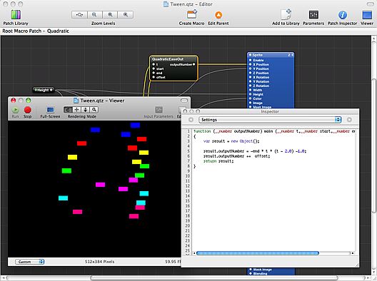 Quartz Composer用にTweenなJavascriptを書いた。と言うか、Objective Cで書かれたモノを移植してみた。パフォーマンス的にどうなのか分かりませんが、Javascriptなので、ウェブページとか他の所でも使える。