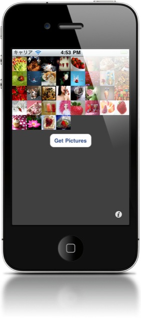 iOSシミュレータは初期状態ではカメラロールに画像が入ってない為、何か読み込みのテストをしたいと思っても先ずは保存しなければならない。面倒なので、Flickrから読み込むアプリを作ってみた。