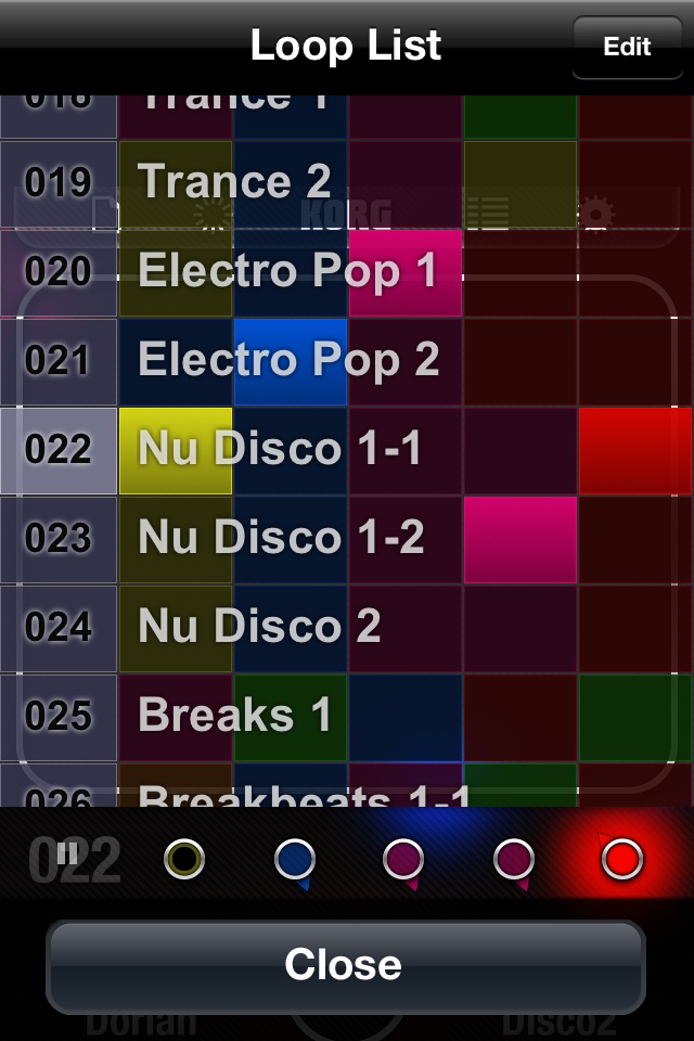 次に、これもループリスト絡みですが、ループリストの画面で、ループのセットを選択出来るだけでなく、パート毎に選択して再生出来るので、出来れば同じモノをタップした時はトグルでオンオフ出来る様にして欲しい。これだけでも随分とライブでプレイする場合に、色々出来る。新規でループを作って空のまま保存して使えって事なのかな。