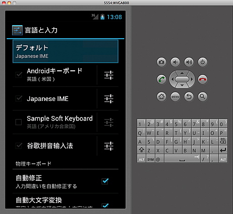 インストールが終わったら、Android Virtual Device Managerで新規に仮想デバイスを作成して、起動するだけ。