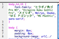 更に、フォント名の日本語表記とアルファベット表記に関しては、日本語表記はSafariが認識しないので、"ヒラギノ角ゴ Pro W3", "Hiragino Kaku Gothic Pro"の様に併記しています。しかし、iPhoneやiPadで見る人が多いサイトは、パフォーマンスの為に順番を入れ替えた方が良いかも知れません。そもそも、スタイルシートを分けている場合は、iOS用は、Mobile Safariでみる事が殆どなので、アルファベット表記と一般フォントファミリ名だけにして、日本語表記は無くても良いかも。